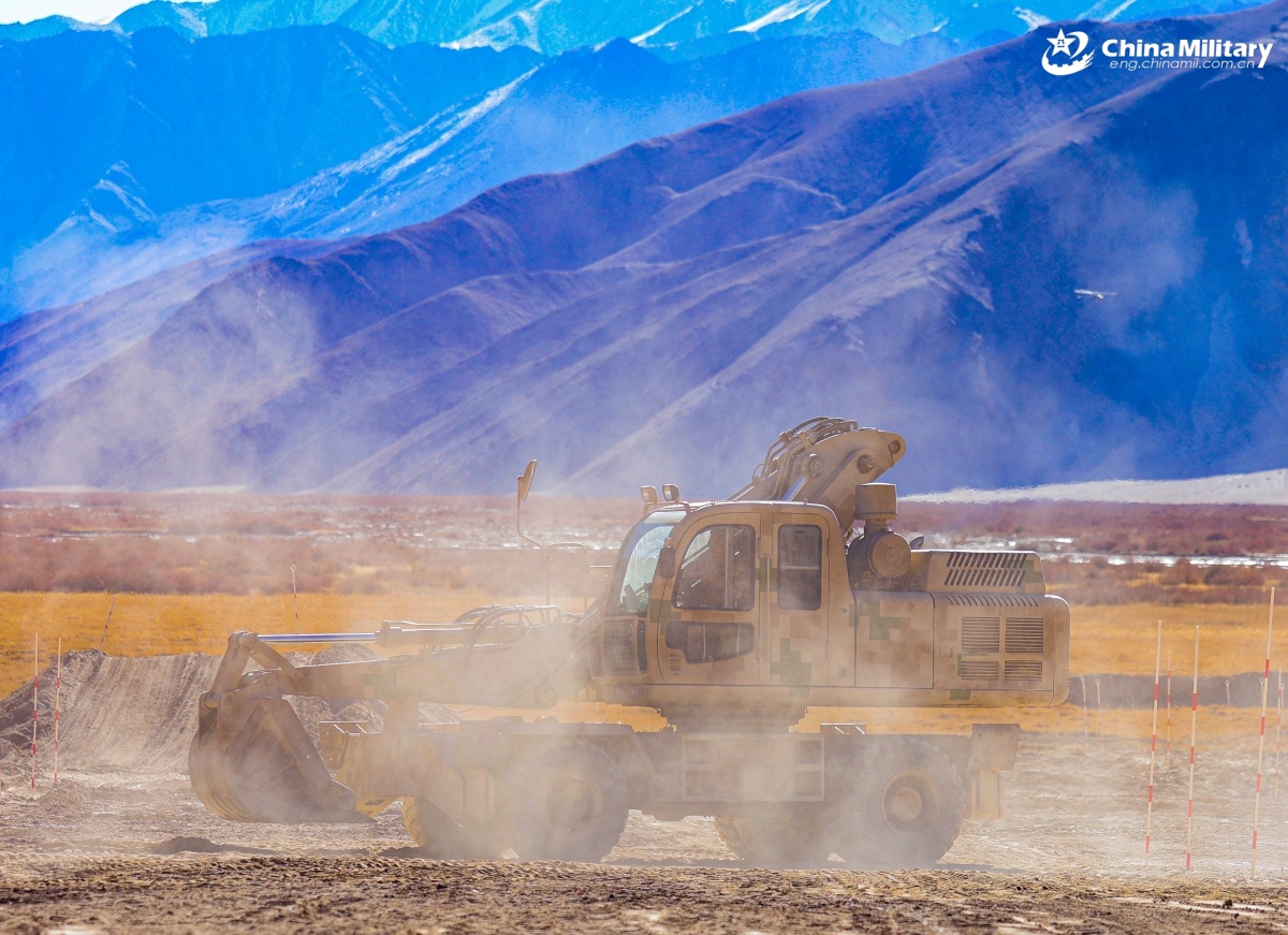 An engineer soldier assigned to a regiment under the Chinese PLA Xinjiang Military Command operates an excavator to complete training subjects during a training exercise on October 14, 2025. (eng.chinamil.com.cn/Photo by Liu Fasen)10月14日,新疆軍區(qū)某團(tuán)組織工兵開展專業(yè)訓(xùn)練。圖為訓(xùn)練中的工程機(jī)械。(英文中國軍網(wǎng)/劉發(fā)森 攝)