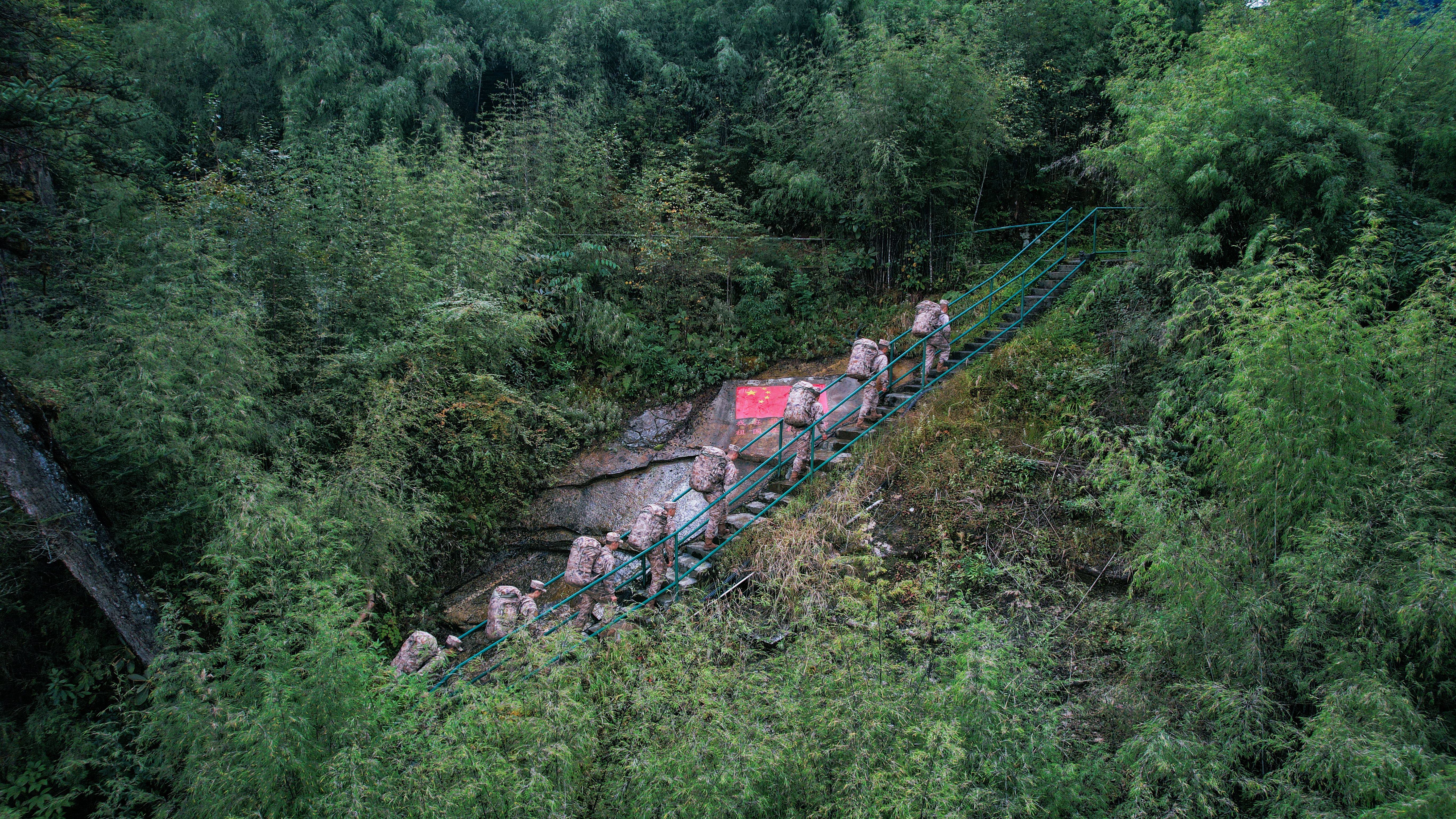 連隊組織下連新兵攀登“天梯”,前往 3197 哨所。