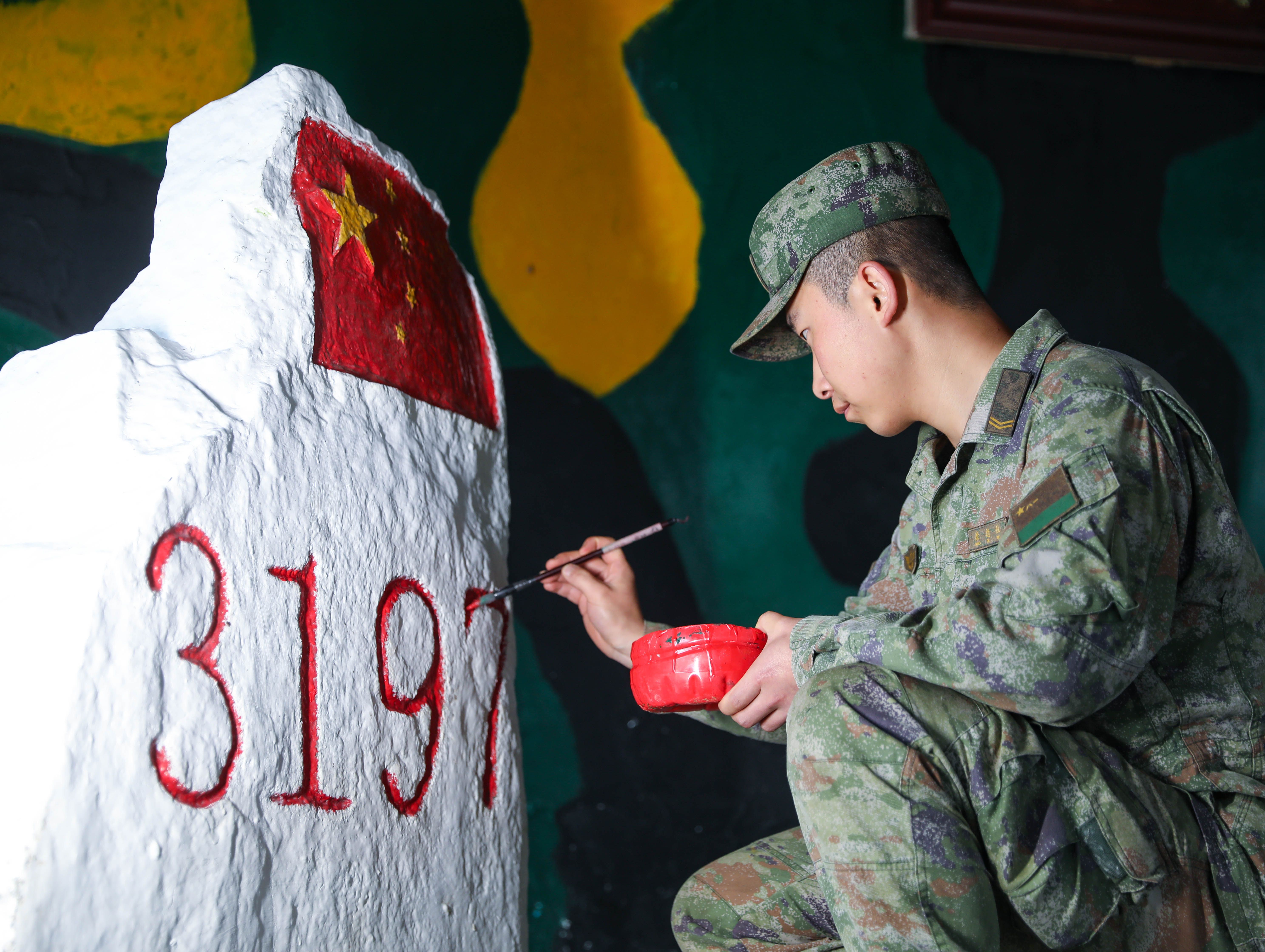 以哨為家,是官兵們心照不宣的默契。鄧東城為哨所周圍的樹木竹叢澆水施肥,筑起一道綠色屏障;康德位視每塊石頭為珍寶,精心在上面刻上強軍話語,用以自勉;李佰棋酷愛鮮花,工作之余總會采擷培育,給哨所增添一抹亮色;梁勝杰用鏡頭記錄下這里的每一個歡笑瞬間和堅守時刻。他們用雙手,將這云端孤哨打造成了一個溫馨而堅韌的家園。