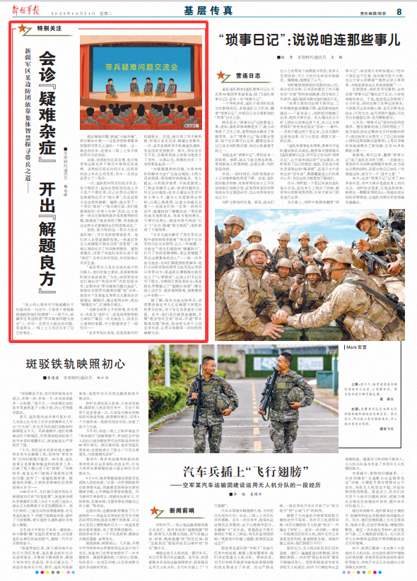 據(jù)了解,每次交流會(huì)結(jié)束后,該團(tuán)都會(huì)指定專人匯總梳理大家提出的帶兵經(jīng)驗(yàn),并下發(fā)至各營(yíng)連學(xué)習(xí)借鑒。此外,他們還打破營(yíng)連建制,開展“班長(zhǎng)結(jié)對(duì)互助”活動(dòng),開通“帶兵疑難問題”熱線,促進(jìn)班長(zhǎng)骨干之間互學(xué)共進(jìn),讓帶兵難題第一時(shí)間找到破解方法。