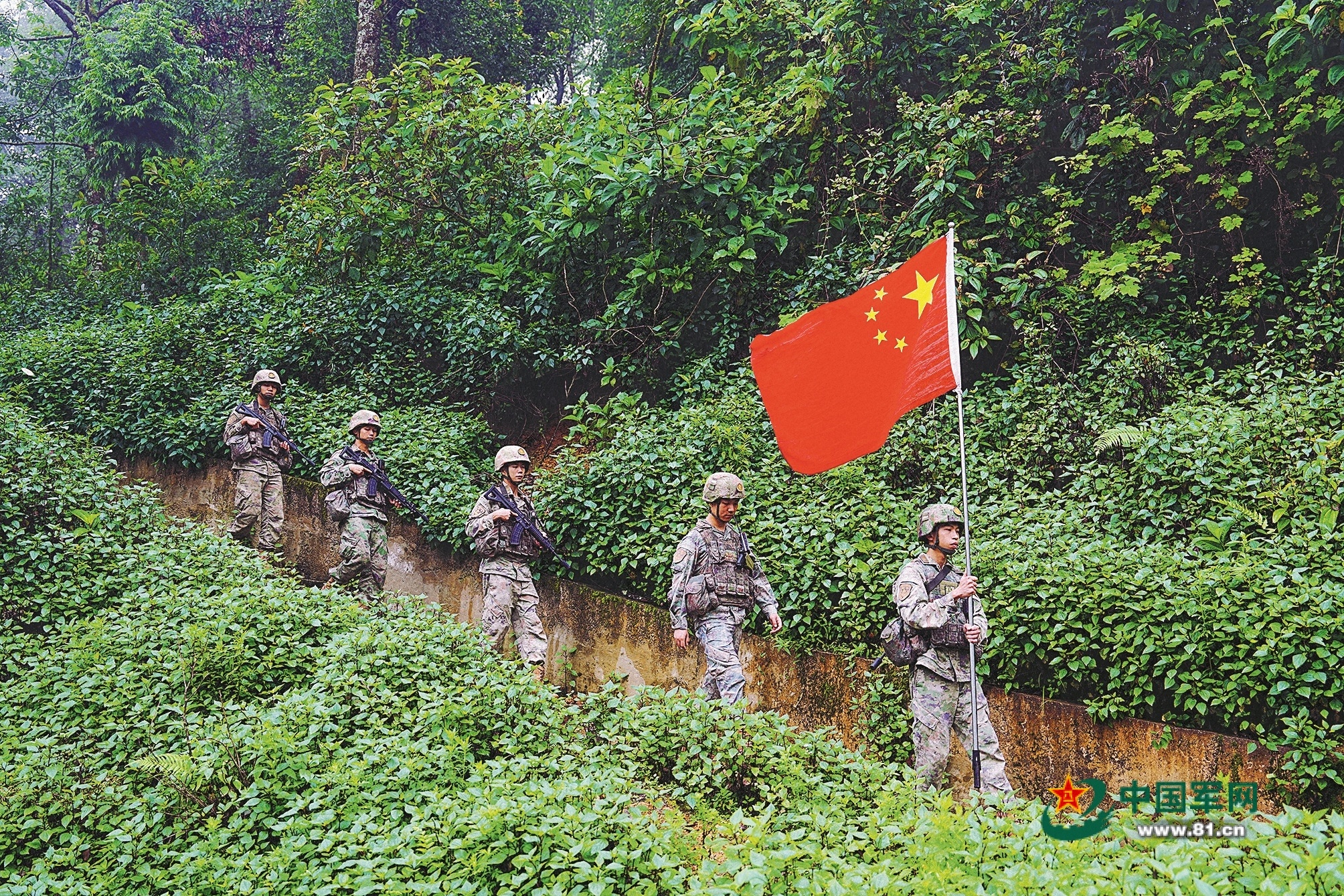 南部戰(zhàn)區(qū)陸軍某邊防連官兵在南陲深山巡邏。