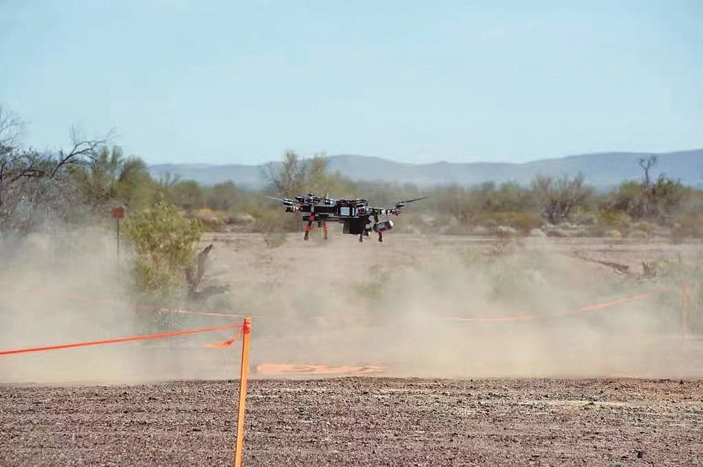 試驗中的無人機可在低能見度的塵土環(huán)境下飛行。
