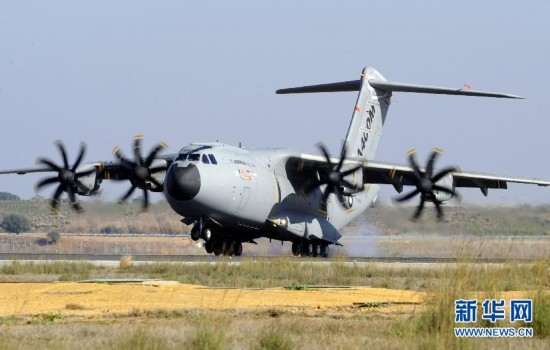 2009年12月11日,在西班牙塞維利亞,由空中客車公司設(shè)計(jì)的A400M軍用運(yùn)輸機(jī)進(jìn)行首次試飛。A400M軍用運(yùn)輸機(jī)最初是為了滿足比利時(shí)、法國(guó)、德國(guó)、西班牙、土耳其、英國(guó)和意大利需求而誕生的迄今歐洲最大軍事合作項(xiàng)目。A400M多功能遠(yuǎn)程軍用運(yùn)輸機(jī)最大載重量37噸,最大航程達(dá)9000公里。新華社/法新