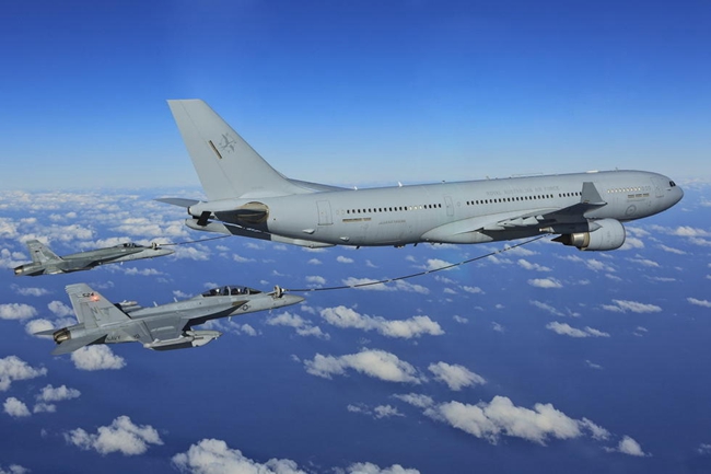 澳大利亞的A330MRTT為美國海軍的EA-18G電子戰(zhàn)飛機加油