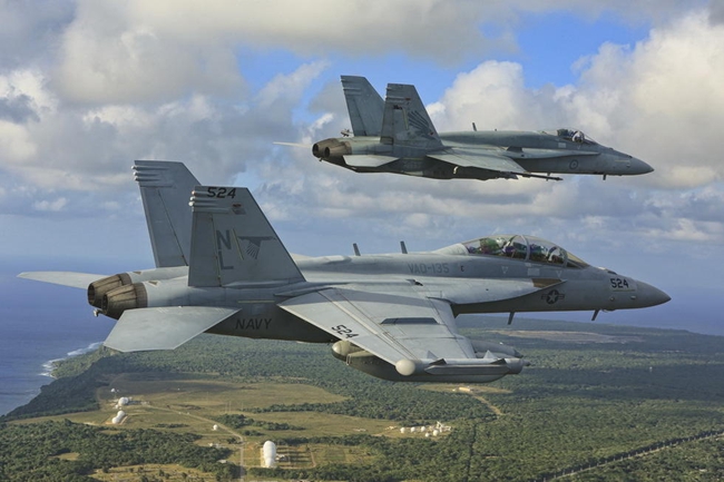 美國(guó)海軍的EA-18G與澳大利亞空軍的F/A-18C編隊(duì)