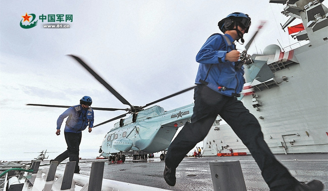 “艦載直升機起降部署!”接到命令,艦載直升機轉(zhuǎn)運小組快速將艦載直升機轉(zhuǎn)運至甲板。鐵翼飛旋,數(shù)架直升機騰空而起,新一輪訓(xùn)練在海天之間展開。