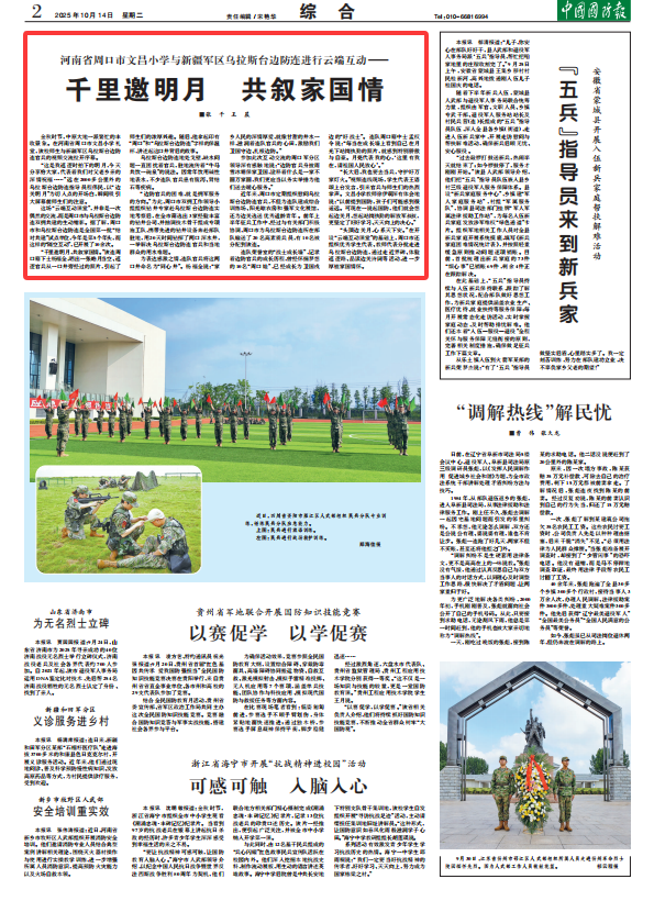 “頭頂邊關月,心系天下安?!痹陂_設“云端互動課堂”的基礎上,周口市還組織優(yōu)秀學生代表、教師代表分批走進烏拉斯臺邊防連,通過走近界碑、體驗巡邏路、品讀邊關詩詞等活動,進一步厚植家國情懷。