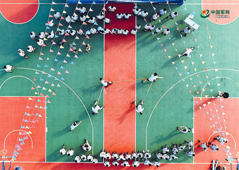 學(xué)生和該校官兵一起參與趣味團(tuán)隊(duì)訓(xùn)練活動(dòng)。龍嘉樂 攝