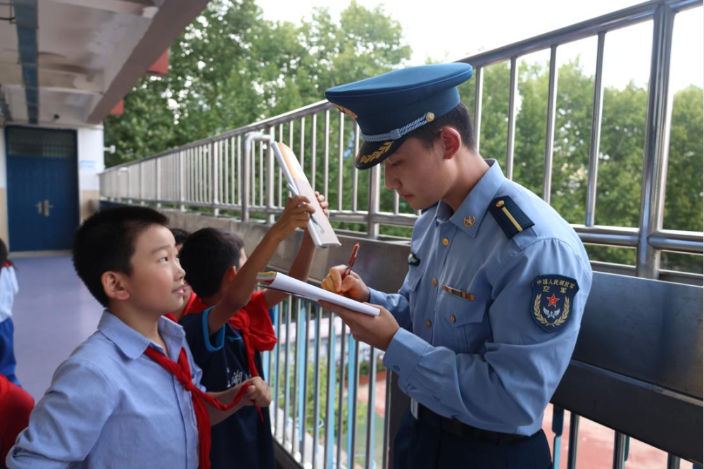 空軍工程大學(xué)某學(xué)院的宣講學(xué)員走進(jìn)駐地小學(xué),為學(xué)生們帶來了一場主題為“銘記歷史 吾輩當(dāng)自強(qiáng)”的國防教育課,讓愛國強(qiáng)軍的種子在孩子們心中生根發(fā)芽。(朱秉璽、傅紫琦、陳晟)