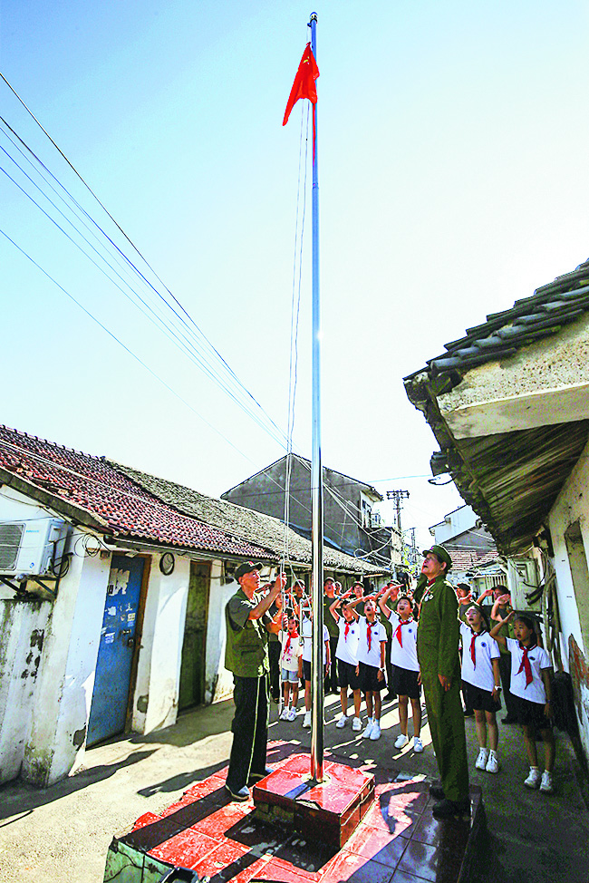 如今,來(lái)范家小院參加升旗儀式的有老兵志愿者,也有當(dāng)?shù)刂行W(xué)校的學(xué)生。每次升旗儀式結(jié)束,范沛先和老兵志愿者都會(huì)留在升旗臺(tái)前,向圍攏過(guò)來(lái)的孩子分享從軍經(jīng)歷,講述三代人的家國(guó)情懷。
