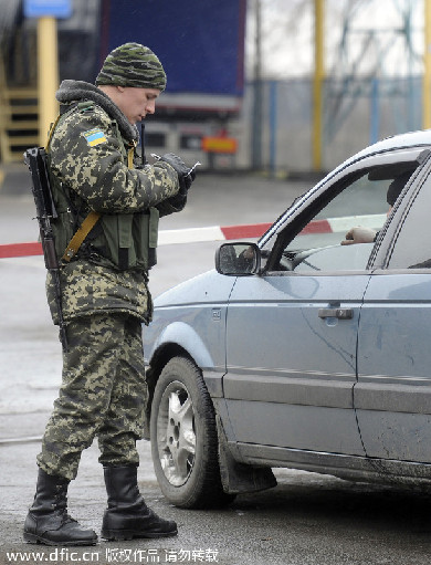 當(dāng)?shù)貢r間2014年3月19日,烏克蘭頓涅茨克,烏克蘭士兵正在城市的邊境值勤,巨大的水泥路障擋住了路口。這里原本只是由烏克蘭本土通往克里米亞半島的通道,如今卻成了烏克蘭和俄羅斯兩國的臨時邊界。