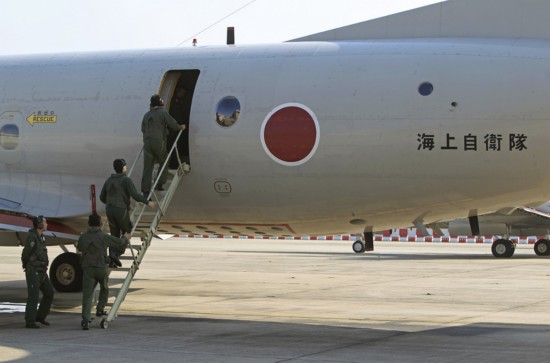 當(dāng)?shù)貢r間2014年3月23日,馬來西亞雪邦,日本海上自衛(wèi)隊員正準(zhǔn)備搭乘P3C巡邏機(jī)前往澳大利亞海域參與搜救活動。據(jù)悉中國衛(wèi)星在印度洋南部發(fā)現(xiàn)了疑似飛機(jī)殘骸,各國搜救隊立刻趕往調(diào)查。