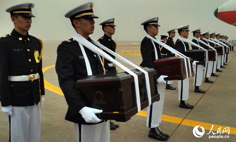 3月28日,在韓國(guó)仁川國(guó)際機(jī)場(chǎng),中方禮兵懷抱中國(guó)人民志愿軍烈士遺骸棺槨。根據(jù)中韓雙方達(dá)成的共識(shí),經(jīng)過(guò)相關(guān)部門共同努力,當(dāng)?shù)貢r(shí)間3月28日上午7時(shí)30分,中韓雙方在韓國(guó)仁川國(guó)際機(jī)場(chǎng),舉行在韓中國(guó)人民志愿軍烈士遺骸交接儀式。