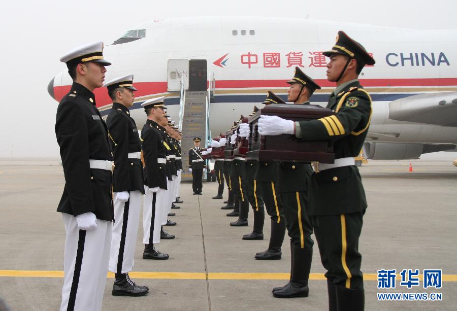 3月28日,在韓國(guó)仁川國(guó)際機(jī)場(chǎng),中方禮兵懷抱中國(guó)人民志愿軍烈士遺骸棺槨。根據(jù)中韓雙方達(dá)成的共識(shí),經(jīng)過(guò)相關(guān)部門(mén)共同努力,當(dāng)?shù)貢r(shí)間3月28日上午7時(shí)30分,中韓雙方在韓國(guó)仁川國(guó)際機(jī)場(chǎng),舉行在韓中國(guó)人民志愿軍烈士遺骸交接儀式。