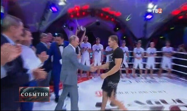 普京觀看桑博格斗比賽 擁抱冠軍并授金腰帶(圖)