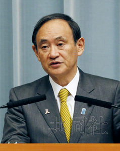 日本官方長官菅義偉在記者會(huì)回應(yīng)日朝綁架磋商問題(共同社)。