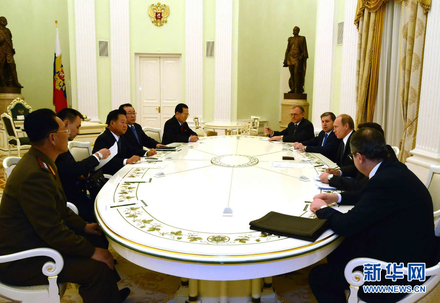 朝中社11月19日提供的照片顯示,俄羅斯總統(tǒng)普京(右三)于當?shù)貢r間18日在莫斯科克里姆林宮會見到訪的朝鮮最高領導人金正恩特使、朝鮮勞動黨中央政治局常委、中央書記崔龍海(左三)。新華社/朝中社