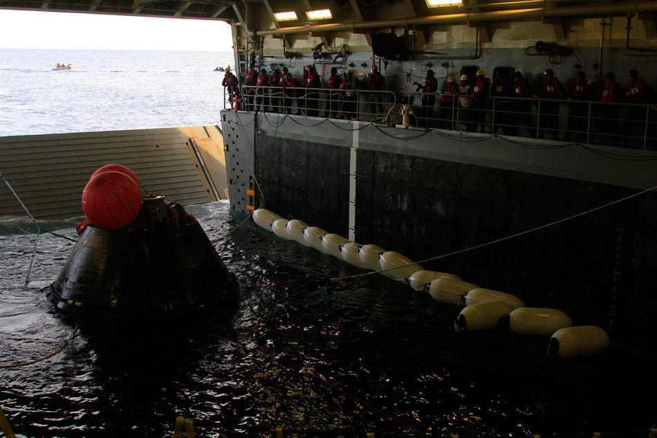 美國海軍回收獵戶座飛船。(美國海軍網(wǎng)站)