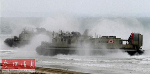 資料圖片:日本海上自衛(wèi)隊的氣墊船演練登陸作戰(zhàn)。