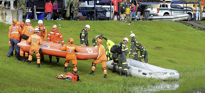 6月26日,在哥倫比亞安蒂奧基亞省瓜塔佩市,救援人員在一個水庫進行搜救。 新華社/美聯(lián)