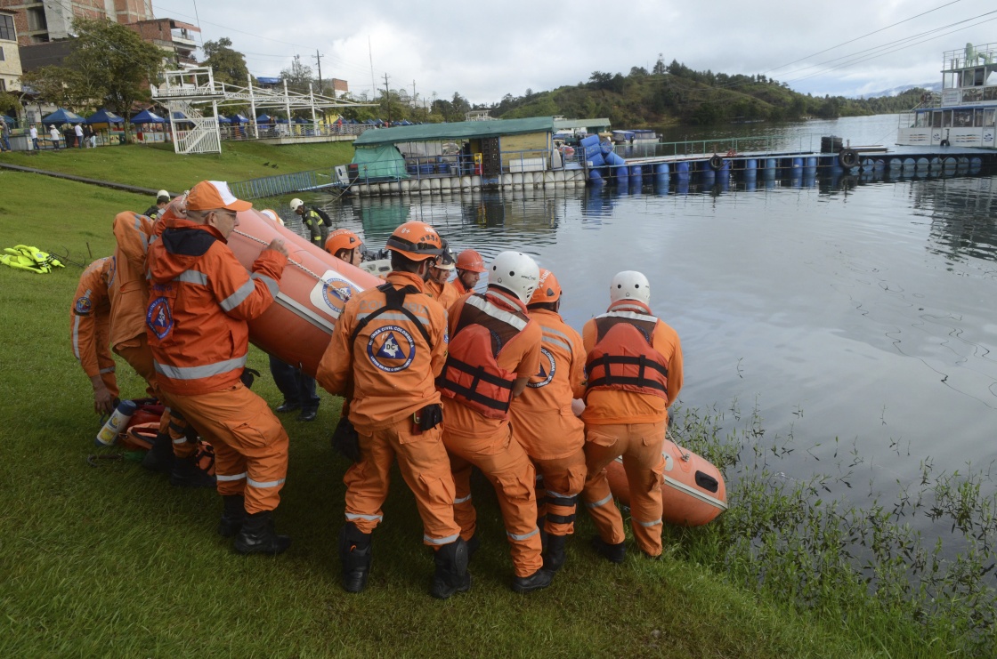 6月26日,在哥倫比亞安蒂奧基亞省瓜塔佩市,救援人員準(zhǔn)備在一個水庫進(jìn)行搜救。 新華社/美聯(lián)