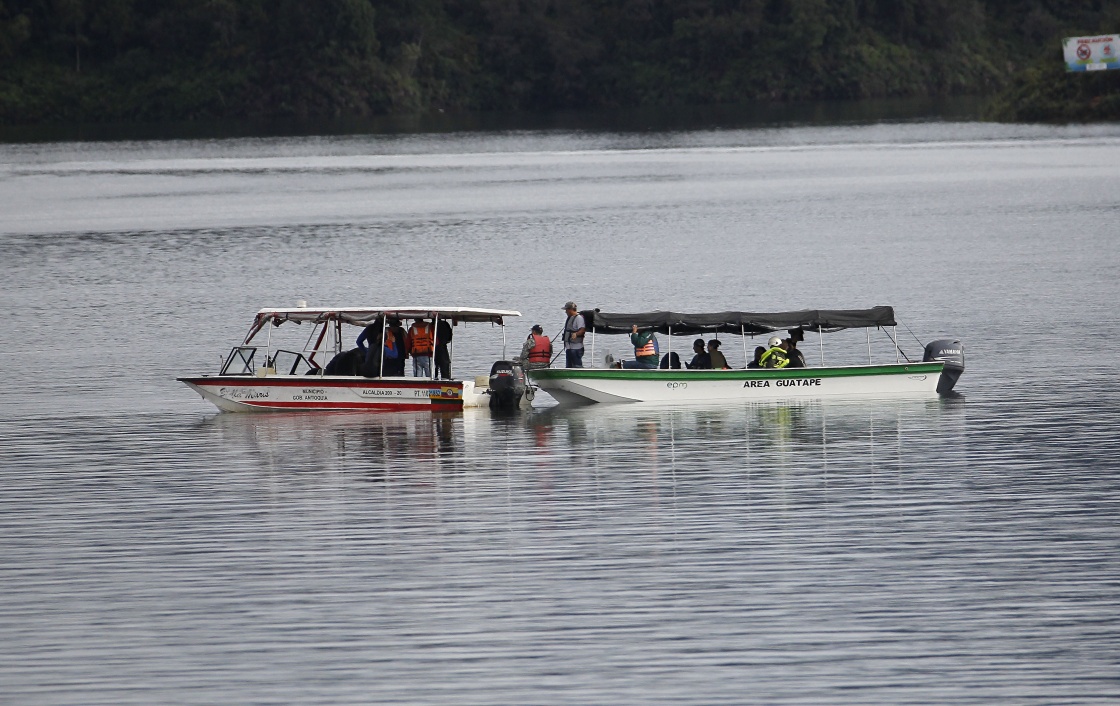 6月26日,在哥倫比亞安蒂奧基亞省瓜塔佩市,救援人員在一個水庫進行搜救。 新華社/美聯(lián)