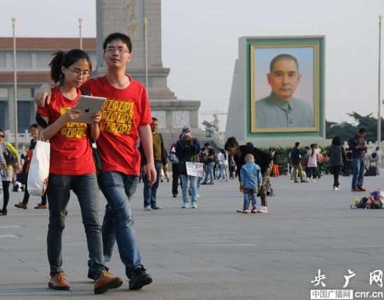2014年4月27日,北京,孫中山先生的巨幅畫像亮相天安門廣場,迎接“五一”國際勞動(dòng)節(jié)的到來。