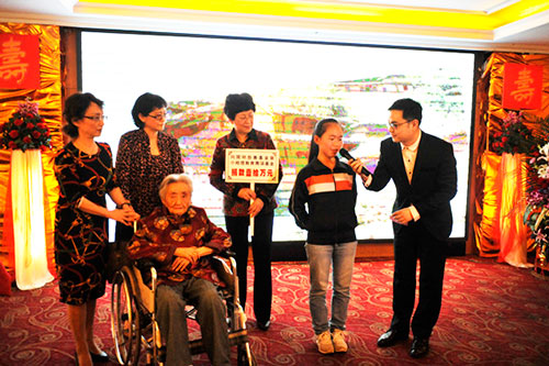 老人把捐款的心愿告訴女兒們,得到了全家人的一致贊同。2014年4月13日,李世瑚在百歲壽辰這天,終于圓了幾十年的夢(mèng)想——她將自己一點(diǎn)一滴積攢起來的10萬元錢悉數(shù)捐給民進(jìn)重慶市委“小桔燈”基金會(huì),用以資助最需要幫助的貧困學(xué)生。