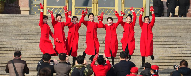 2015全國兩會:靚麗服務(wù)員廣場秀風(fēng)情