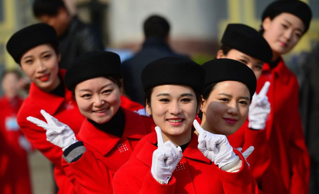 2015全國兩會(huì):靚麗服務(wù)員廣場秀風(fēng)情