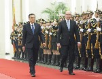 會(huì)談前,李克強(qiáng)在人民大會(huì)堂北大廳為索博特卡舉行歡迎儀式。全國政協(xié)副主席陳元參加。