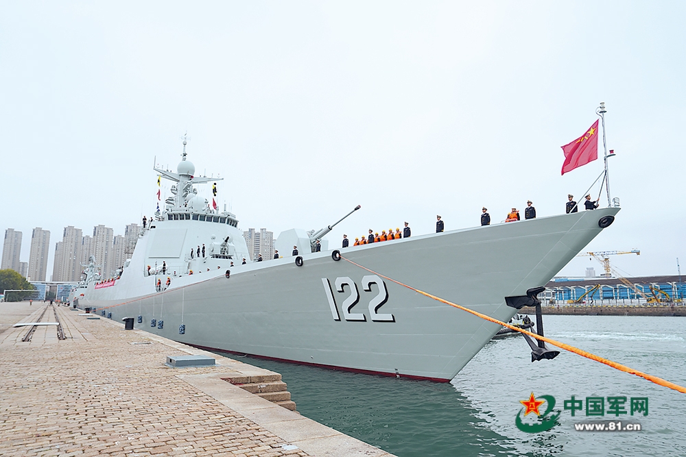 第48批護(hù)航編隊(duì)唐山艦從山東青島某軍港起航。劉再耀攝