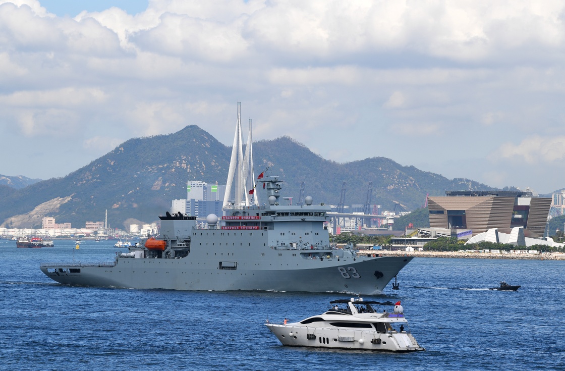 10月3日上午,中國海軍83艦編隊離開香港,結(jié)束為期3天的艦艇開放活動。根據(jù)遠(yuǎn)海綜合實習(xí)訪問任務(wù)計劃,將啟程訪問柬埔寨、泰國、新加坡3國。新華社記者 陳鐸 攝