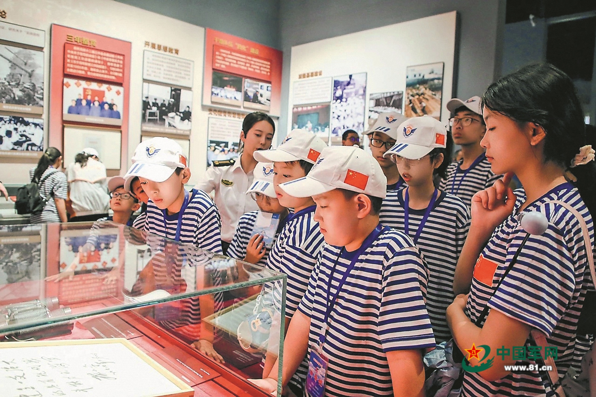 伴隨著講解員的解說,新中國成立前后的那段歷史呈現(xiàn)在人們眼前:1949年,中共中央討論通過了毛澤東起草的《目前形勢和黨在一九四九年的任務》并形成決議,決議指出:“應當組成一支保衛(wèi)沿海沿江的海軍?!?949年4月23日,中國人民解放軍第一支海軍部隊——華東軍區(qū)海軍在江蘇泰州白馬廟成立。自此,人民海軍正式啟航。