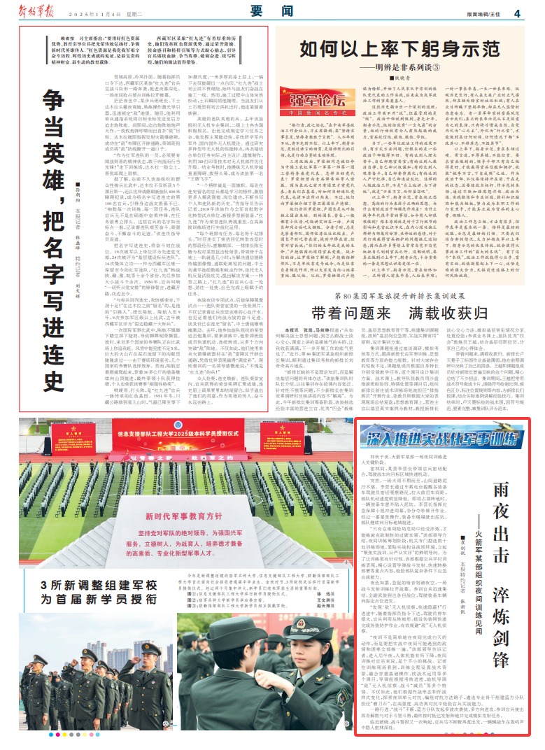 “夜訓不是簡單地在夜間完成白天的動作,而是要把實戰(zhàn)中夜間可能遇到的敵情和困難全部練一遍?!痹摬款I導告訴記者,進入后半夜,人體機能有所下降,夜間訓練對官兵來說,是個不小的挑戰(zhàn)。記者在訓練現(xiàn)場看到,訓練全程設置戰(zhàn)術背景,融合穿插基礎操作、技戰(zhàn)術運用等多個課目,導調(diào)組根據(jù)考核進度,臨機導調(diào)“敵”無人機偵察、戰(zhàn)斗“減員”等多個特情。不僅如此,他們根據(jù)作戰(zhàn)形態(tài)和作戰(zhàn)樣式變化,探索夜訓單元對抗、編組對抗方法路子,遴選專業(yè)骨干組建藍方分隊擔任“磨刀石”,在高強度、高仿真對抗中檢驗官兵實戰(zhàn)能力。