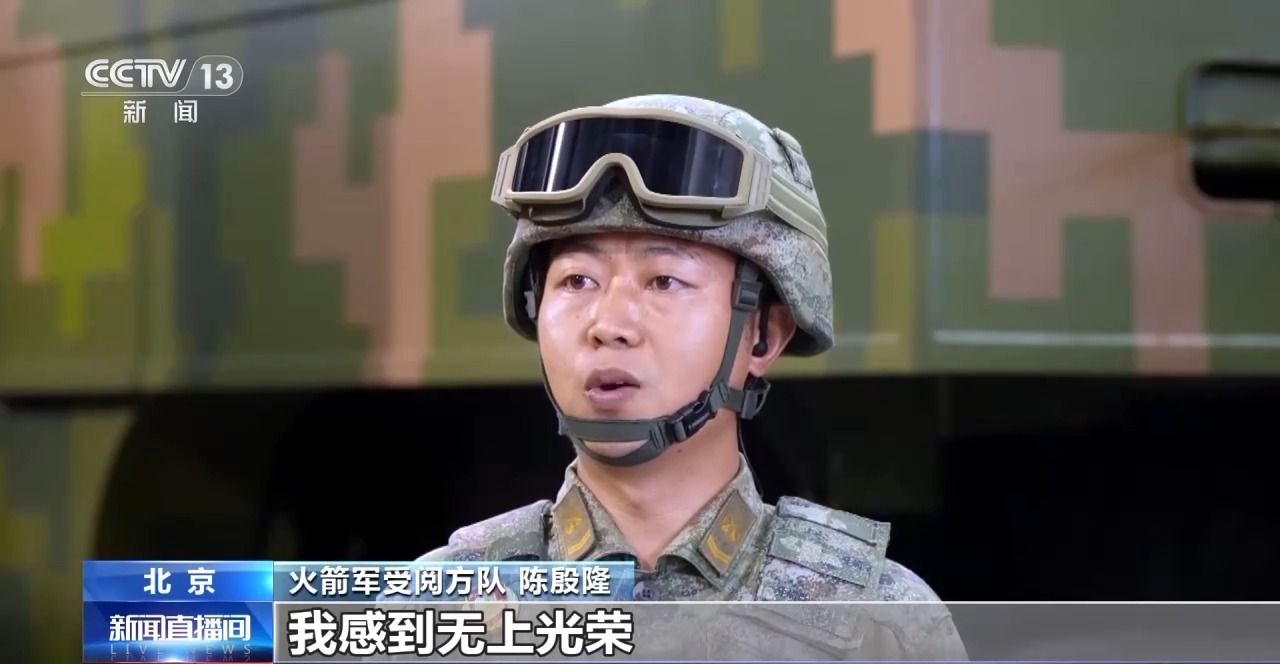 火箭軍受閱方隊 陳殷?。哼@次能夠圓滿完成受閱任務(wù),我感到無上光榮,我將接過班長手中的“接力棒”,展現(xiàn)出新時代火箭兵敢為人先、奮進一流的昂揚風(fēng)貌。