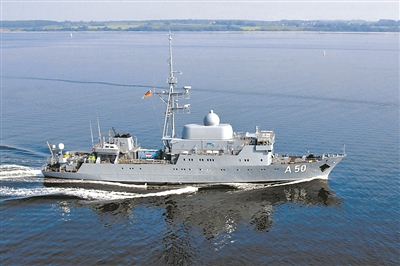 德國海軍歐斯特級電子偵察船除裝備有電磁信號偵測設(shè)備、激光通訊終端、抗干擾設(shè)備以及配套的信號分析設(shè)備外,還配備有被動聲吶,用于偵聽水下聲學(xué)信號,為反潛提供信息支持。