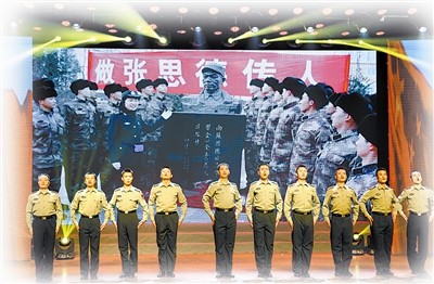 官兵在舞臺(tái)上表演反映衛(wèi)士風(fēng)采的節(jié)目。作者提供
