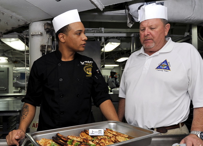杜魯門號(hào)航母艦長(zhǎng)Edward F. Ney給予廚房小組五星服務(wù)評(píng)級(jí)。