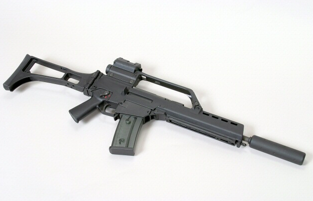 G36步槍是德國部隊裝備的新型制式步槍,該槍是德國黑克勒-科赫在1995年推出的現代化突擊步槍,發(fā)射5.56x45毫米北約制式子彈,槍身大量使用工程塑料,重量輕強度大。由于在設計時充分考慮人體工程學原理,因此在握持射擊時極為舒服。