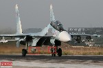 俄羅斯國防部日前公布的俄空軍駐敘利亞特遣部隊的圖片,可見這架蘇-30SM戰(zhàn)斗機的機身掛架搭載了2枚非制導炸彈,這是俄軍首次公開蘇-30SM戰(zhàn)機參與對地攻擊行動,此前該型機主要執(zhí)行為蘇-34和蘇-24M進行空中護航任務。