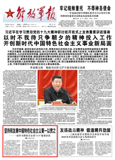 深入學習貫徹習主席“1·5”重要講話精神,緊密團結在以習近平同志為核心的黨中央周圍,堅決維護核心、聽從指揮,一以貫之堅持和發(fā)展中國特色社會主義,堅定不移走中國特色強軍之路,我們就一定能擔當起黨和人民賦予的新時代使命任務,不負黨和人民重托。請關注今日出版的《解放軍報》發(fā)表的評論員文章——