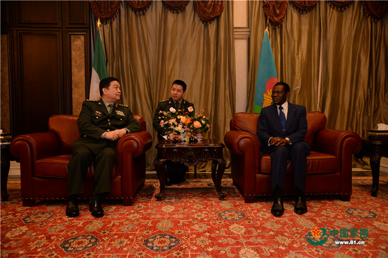 赤道幾內(nèi)亞總統(tǒng)奧比昂2月25日上午在總統(tǒng)府會見了到訪的國務(wù)委員兼國防部長常萬全。