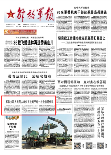 中央軍委改革和編制辦公室近日完成解放軍和武警部隊(duì)文職人員用人單位首次賦予統(tǒng)一社會(huì)信用代碼和制發(fā)證書工作。請(qǐng)關(guān)注今日《解放軍報(bào)》的報(bào)道——