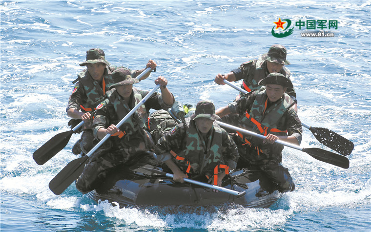 特戰(zhàn)隊員進(jìn)行海上操舟滲透課目訓(xùn)練。 解放軍報記者 李靖攝