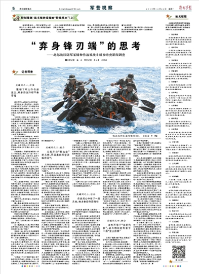 這里充滿傳奇——和平時期有28人次榮立個人一等功,是唯一被中央軍委記集體一等功的特種部隊。這里充滿挑戰(zhàn)——300多個訓(xùn)練課目中,一半以上是險難高危課目,曾創(chuàng)造全軍軍事訓(xùn)練12項紀(jì)錄。是什么力量讓他們勇往直前?這樣的力量又從何而來?請關(guān)注今日《解放軍報》的報道——