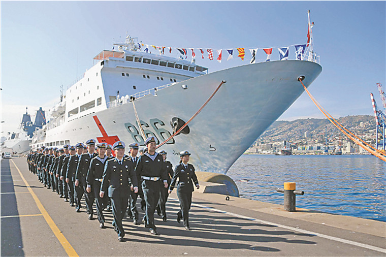 中國海軍“和平方舟”號醫(yī)院船官兵隊(duì)列整齊。江 山攝