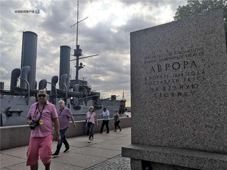 △阿芙樂爾號(hào)奉命開炮,發(fā)出進(jìn)攻冬宮的信號(hào),成為了1917年十月革命的象征。阿芙樂爾號(hào)至今仍然停泊在圣彼得堡的涅瓦河畔。(央視記者關(guān)舟拍攝)