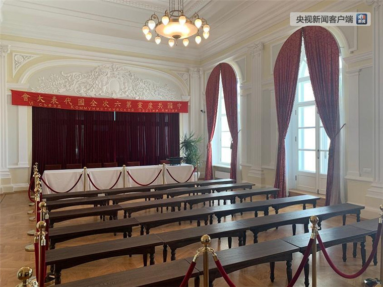 △位于小樓二層的會議室。當年就是在這里,共產國際代表布哈林作了《中國革命與中國共產黨的任務》報告,瞿秋白作了政治報告,周恩來作了組織報告和軍事報告,李立三作了農民問題報告。(央視記者拍攝)