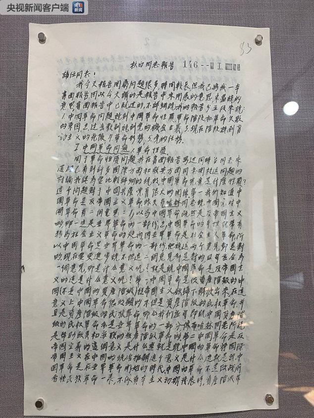 △瞿秋白發(fā)言稿。(央視記者拍攝)